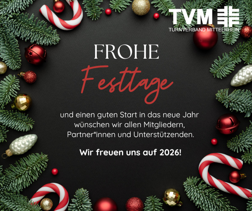 Die Geschäftsstelle des Turnverbandes Mittelrhein geht in Winterpause und bleibt von Montag, 22.12.25, bis einschließlich Freitag, 02.01.26, geschlossen.