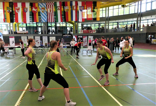 Trotz erreichter EM Qualifikation und 2 Bronzemedaillen nahm das TVO Team 1 mit Katrin Ryan, Peri Ann Houk und Julia Kannengießer den Wettkampf als eine Welle von Aufs und Abs wahr. Mit ungewohnten 4 Hängern beim SR Speed Relay und 341 Sprüngen (4 weniger als Team 2) starteten sie in den Wettkampf, was zunächst für einen Stimmungsdämpfer sorgte. Der Single Rope Double Under Relay von Peri und Maike, mit für sie guten 171 Sprüngen und Platz 8, steigerte wieder die Laune. Diese gute Grundstimmung nahmen die 4 in ihre Spezialdisziplin dem 4 x 30 Sek. Double Dutch Speed Relay mit. Es entwickelte sich ein heißer Fight auf der Fläche zwischen den zeitgleich springenden Teams aus Rüsselsheim, Neutraubling und Hanau. Bis zum letzten Wechsel lagen die Teams gleich auf, ehe Hanau und Neutraubling wegzogen. Aber mit neuem persönlichem Bestwert von 379 Sprüngen sicherten sich die Obersteiner Mädels die Bronzemedaille und das Spezialistenticket zur EM. Alle 3 Spitzenteam lagen erheblich über den bisherigen Deutschen Rekord, der von den Obersteiner Mädels gehalten wurde. Trotz erreichter Spezialistenqualifikation für das Open Tournement und Platz 6 im DD Speed Sprint, lief die anschließende Disziplin für Julia, Peri und Katrin angesichts 4 Hänger nicht optimal. Hier war definitiv mehr zu holen, vor allem da diese Disziplin im Training immer fehlerfrei durchlief. In den anschließenden Freestyles gab es immer wieder den ein oder anderen Hänger zu viel. Platz 11 im SR Pair Freestyle und Platz 6 im Double Dutch Team Freestyle waren nicht zufriedenstellend für die Vier. Mit Platz 4 im Single Rope Team Freestyle und Platz 6 im Double Dutch Single Freestyle konnten weitere Spezialistentickets für das Open Tournement der EM erreicht werden. Nachdem man in der Overall-Wertung viele Jahre den 2. Platz hinter Neutraubling belegt hatte, war es bei der diesjährigen Meisterschaft in der Gesamtwertung der 4. Platz.