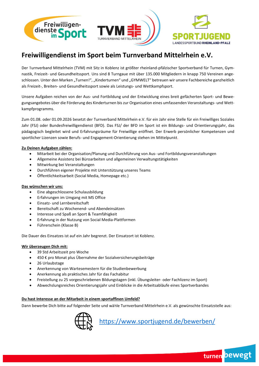 Freiwilliges Soziales Jahr oder Bundesfreiwilligendienst beim TVM