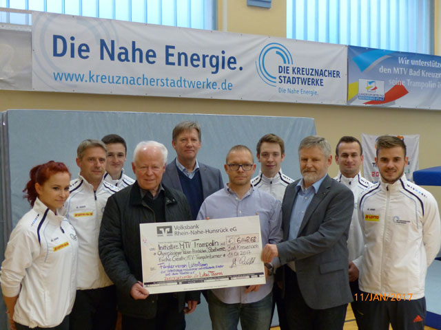Am alljährlichen Glühweinstand der MTV-Trampoliner trifft man sich zum Jahresabschluss. Beim Weihnachtsshopping in der Bad Kreuznacher Fußgängerzone blieben wiedermal viele Menschen zum netten Gespräch und einem heißen Getränk bei Steffen Eislöffel und Team stehen. Für einen guten Zweck wird jährlich der Stand für 3-4 Tage vor Weihnachten an der Ecke Römerstraße/Mannheimer Straße aufgebaut. Ganz ohne festen Plan – auf freiwilliger Basis trifft sich das Trampolin-Team am Stand und verkauft fleißig Glühwein für den guten Zweck in der Region. Ebenfalls wieder an Bord, der langjährige Partner der Trampoliner, die Bad Kreuznacher Stadtwerke unter Dietmar Canis.In 2016 ergab sich mit Stefan Pallesch, Inhaber von Küche Creativ, ein weiterer Unterstützer guter Taten in der Region. Als Herr Pallesch von der Aktion für Lucas Thamm hört, bietet er sofort an, den Glühwein einzukaufen und auch hinterher ebenso wie Herr Canis die Erlössumme um 1.100,00 € aufzustocken, denn für den Küchenstudioinhaber schloss sich hier auch ein privater Kreis zur Familie Thamm. Der 13 jährige Lucas Thamm benötigt ein Spenderherz und liegt seit Monaten in Heidelberg im Krankenhaus. Sein Vater Olaf Thamm berichtet, dass es Lucas aktuell den Umständen entsprechend gut geht und nun in der Spenderliste ganz oben steht. Eine nervenzerreißende Zeit liegt hinter der Familie und nun besteht die Hoffnung, dass Lucas sich bald der benötigen Operation unterziehen kann.